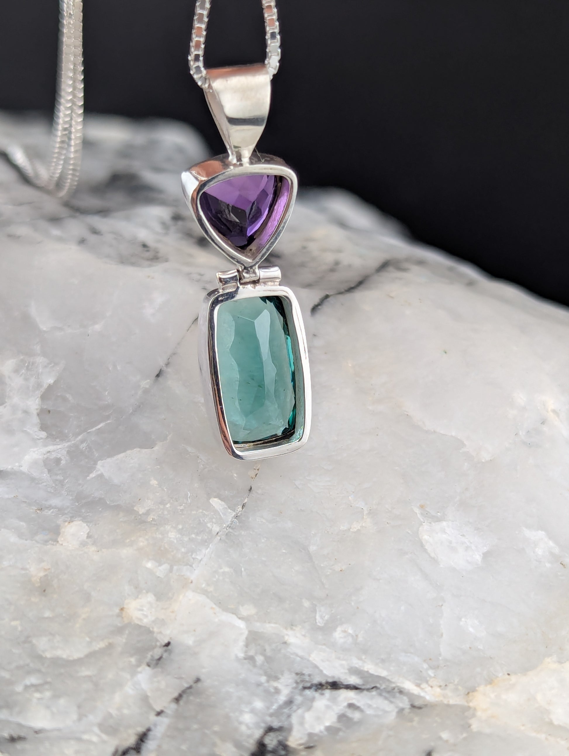 - Natural gemstones. Trillion amethyst is 1.60 carat and the prasiolite is 7 carats