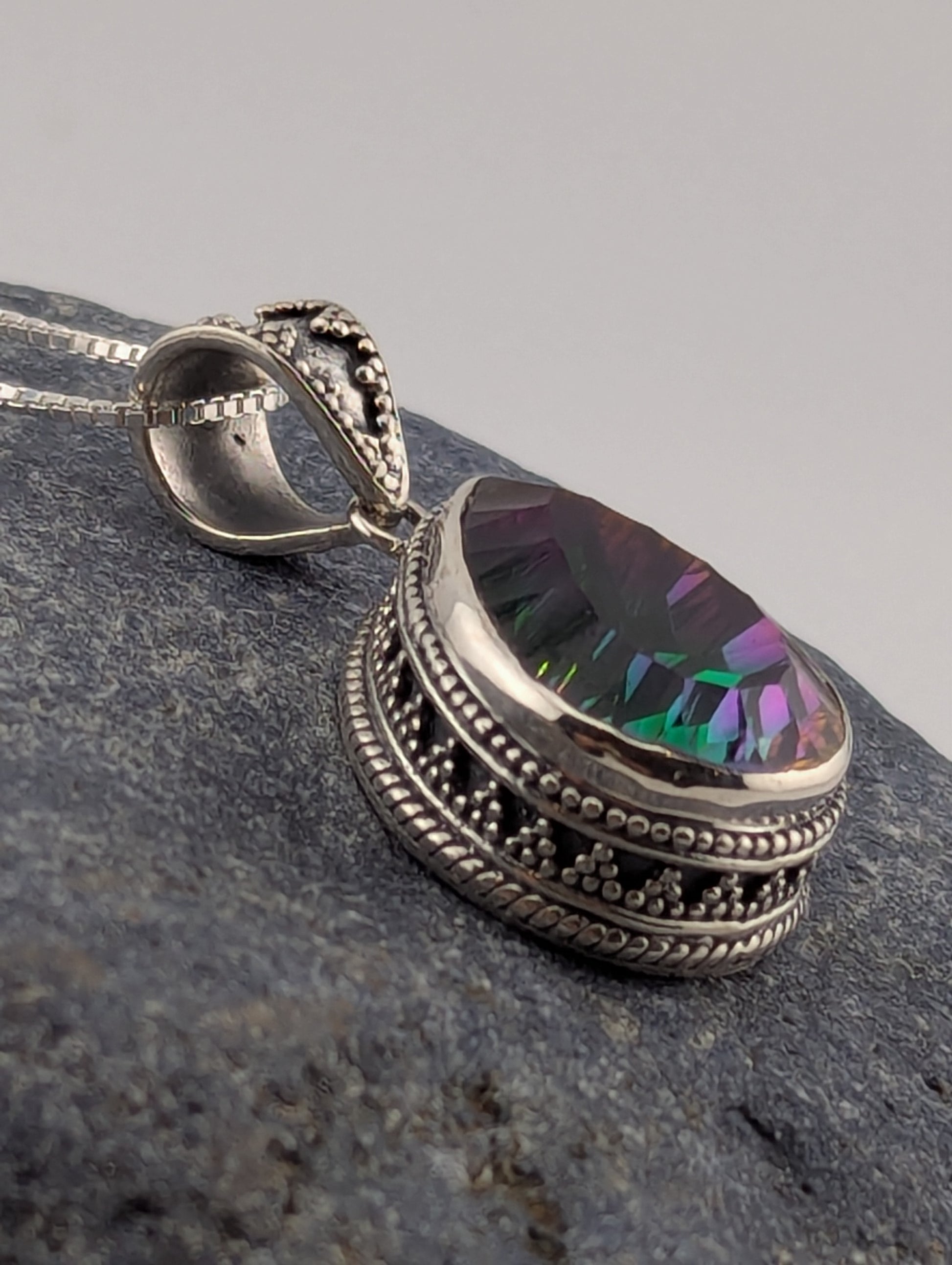 . Natural gemstone Topaz, has been titanium coated for a rainbow effect