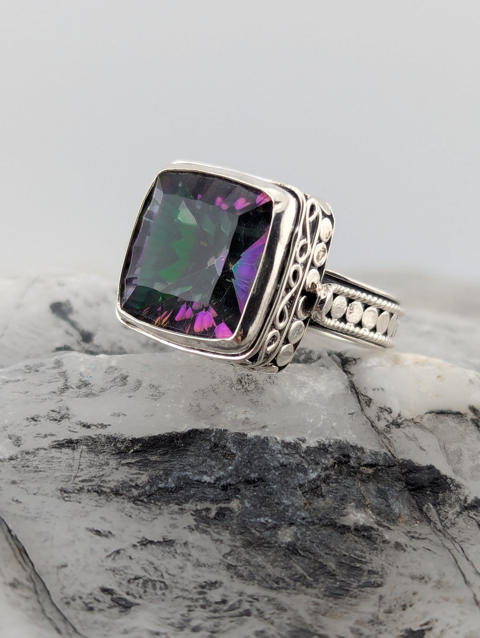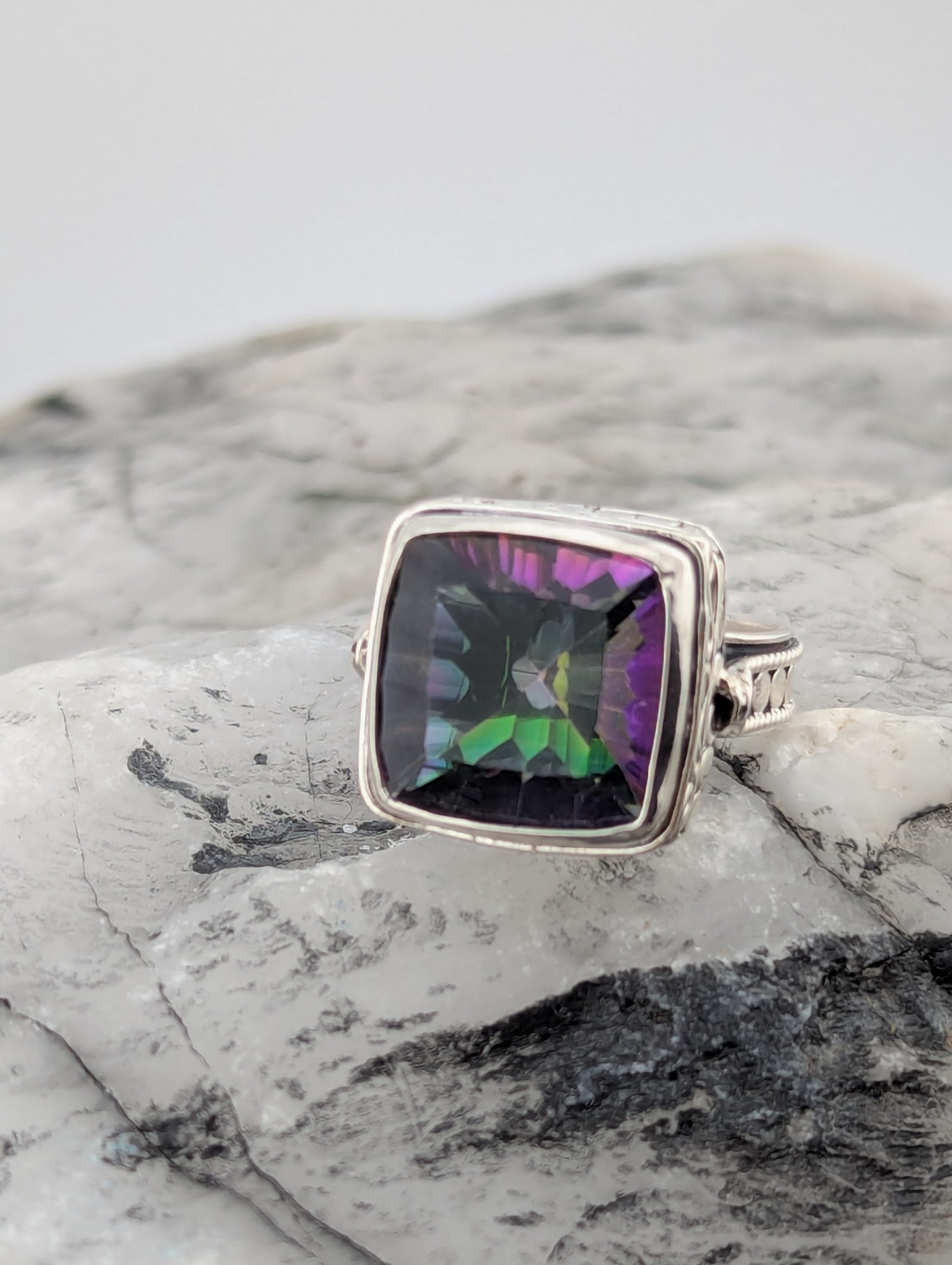 . 14mm by 14mm mystic topaz is 10.49 carats